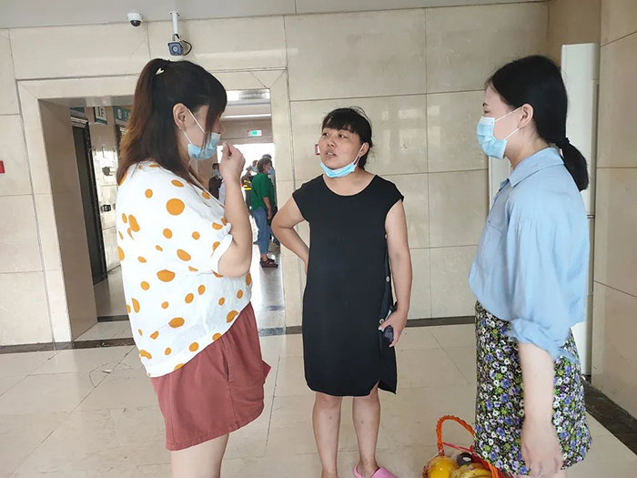 2021年7月5日,馨冠食品婦女聯(lián)合會成員賈艷、王越、王曼帶著各位婦女代表的祝福和關(guān)懷前往保定市第一中心醫(yī)院看望陳曼母親。由于疫情期間,醫(yī)院嚴(yán)禁探視,我們未能見到陳曼母親本人。