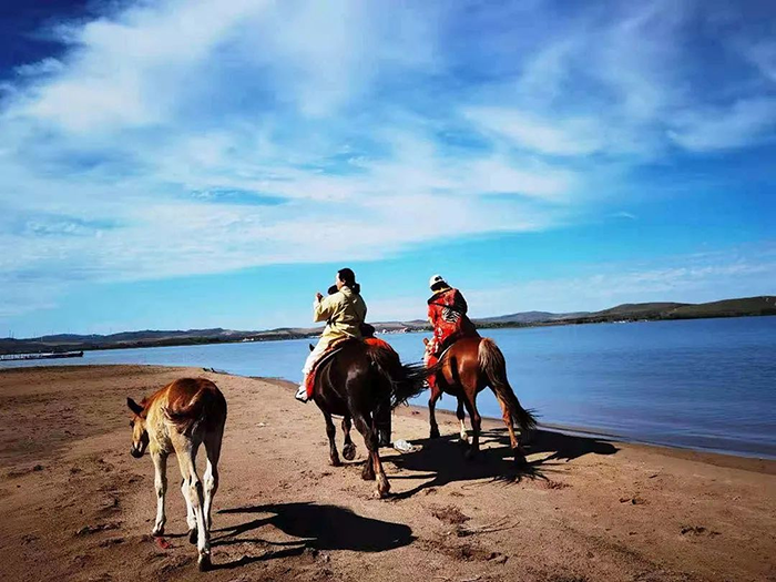 夏天的草原綠草如茵,深呼吸一口,清香的草木味撲鼻而來,讓人心曠神怡、如癡如醉。漫游在草原上,風(fēng)吹草動(dòng),形成了一幅如詩如畫的景象,正如北朝民歌“天蒼蒼,野茫茫,風(fēng)吹草低見牛羊”!騎在馬背上,悠哉游哉,仿佛進(jìn)入了世外桃源。