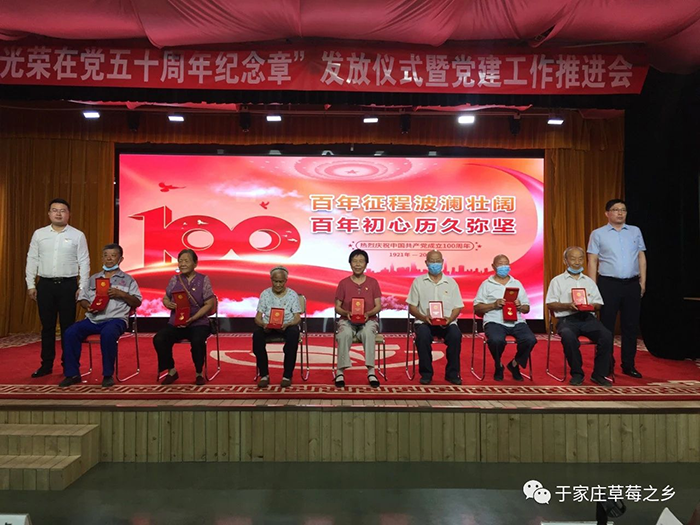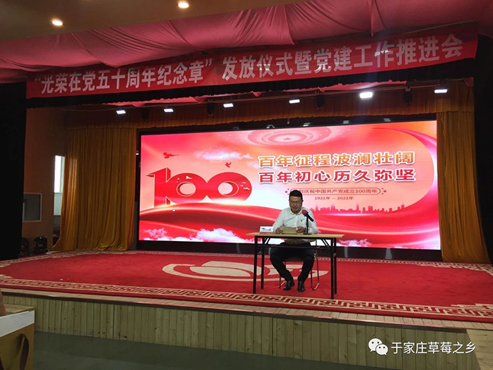 薪火相傳守初心,接續(xù)奮斗新征程。為慶祝中國(guó)共產(chǎn)黨成立100周年,推進(jìn)黨史學(xué)習(xí)教育走深走實(shí),進(jìn)一步增強(qiáng)廣大黨員的榮譽(yù)感、歸屬感和使命感,激發(fā)廣大黨員愛(ài)崗敬業(yè)、奮發(fā)有為的工作熱情,6月29日上午,于家莊鎮(zhèn)“光榮在黨50年紀(jì)念章”發(fā)放儀式暨黨建工作推進(jìn)會(huì)于保定市冠香居食品有限公司3樓“馨冠文化藝術(shù)館”隆重舉行。