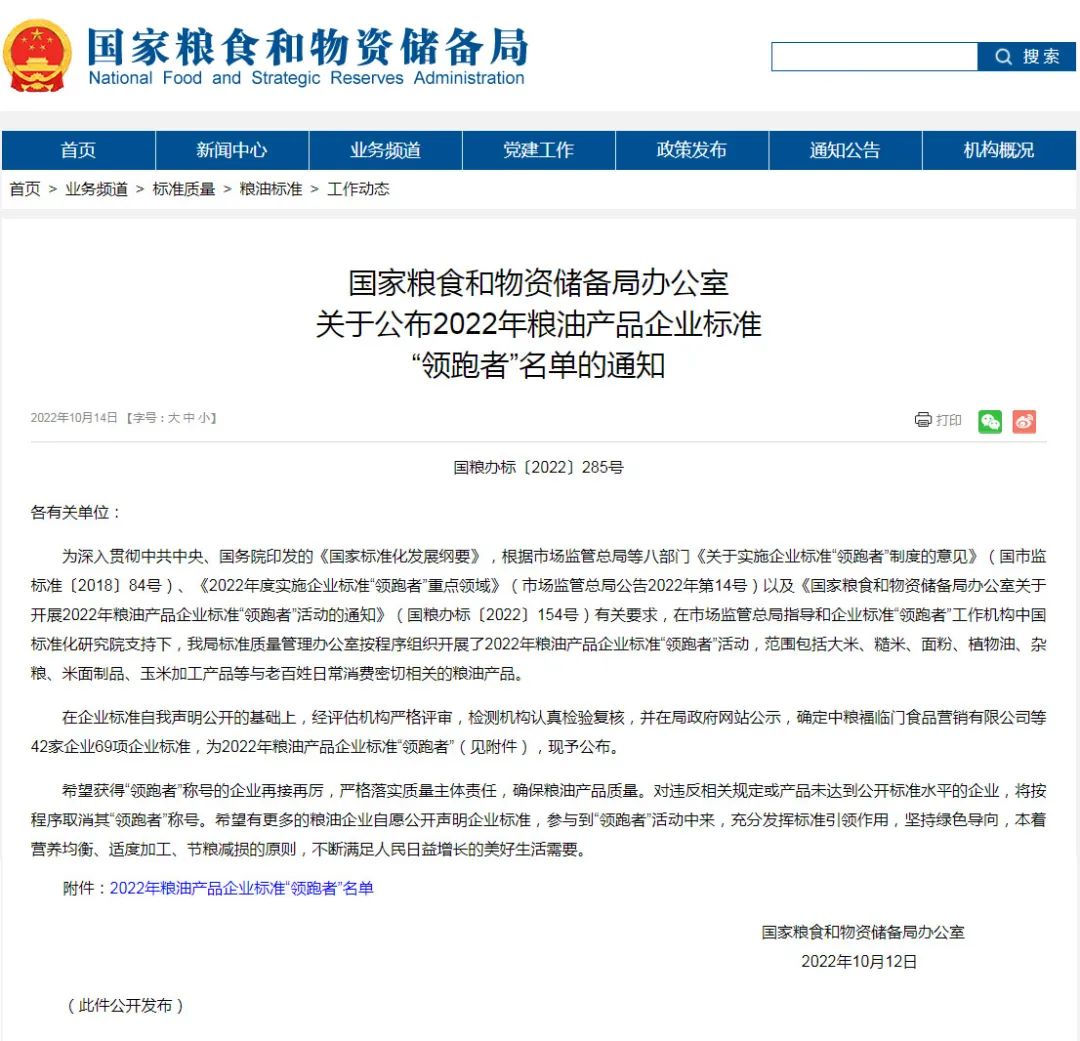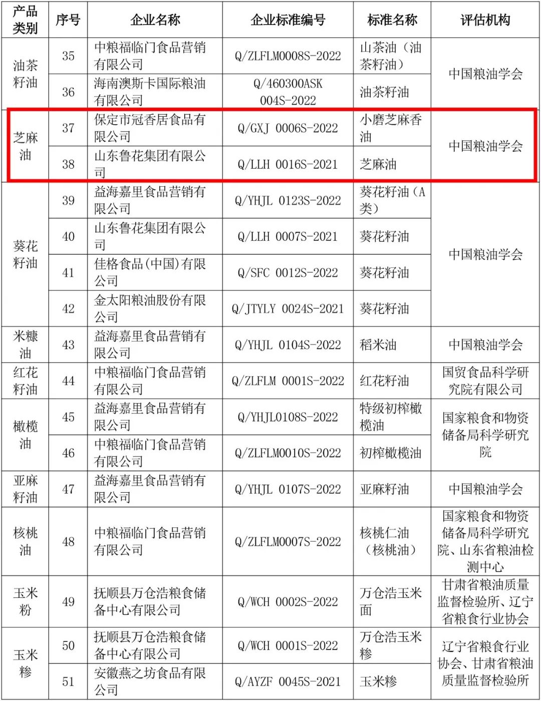 恭喜冠香居公司獲得2022年糧油產品企業(yè)標準領跑者!